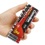 باتری نیم قلمی Camelion Plus Alkaline 1.5V AAA بسته 12 عددی شیرینکباتری نیم قلمی پلاس آلکالاین کملیون مدل LR03 در بسته بندی ۱۲ عددی تولید و به بازار عرضه شده است. این محصول قابلیت شارژ مجدد را ندارد اما وجود تکنولوژی Alkaline در ساخت آن باعث شده از دوام و کارآیی بسیار بیشتری نسبت به باتری های قدیمی برخوردار باشد. ولتاژ اسمی این محصول ۱٫۵ ولت بوده و در تولید آن از جیوه و کادمیوم استفاده نشده که این امر باعث می شود این باتری برای محیط زیست مضر نباشد. این باتری ها گزینه ای مناسب برای تامین انرژی الکتریکی وسایلی مانند ساعت، اسباببازی، ریموت کنترل، دوربین، ماوس، موزیک پلیر و دیگر دستگاههایی است که از باتری های نیم قلمی یا AAA استفاده میکنند.