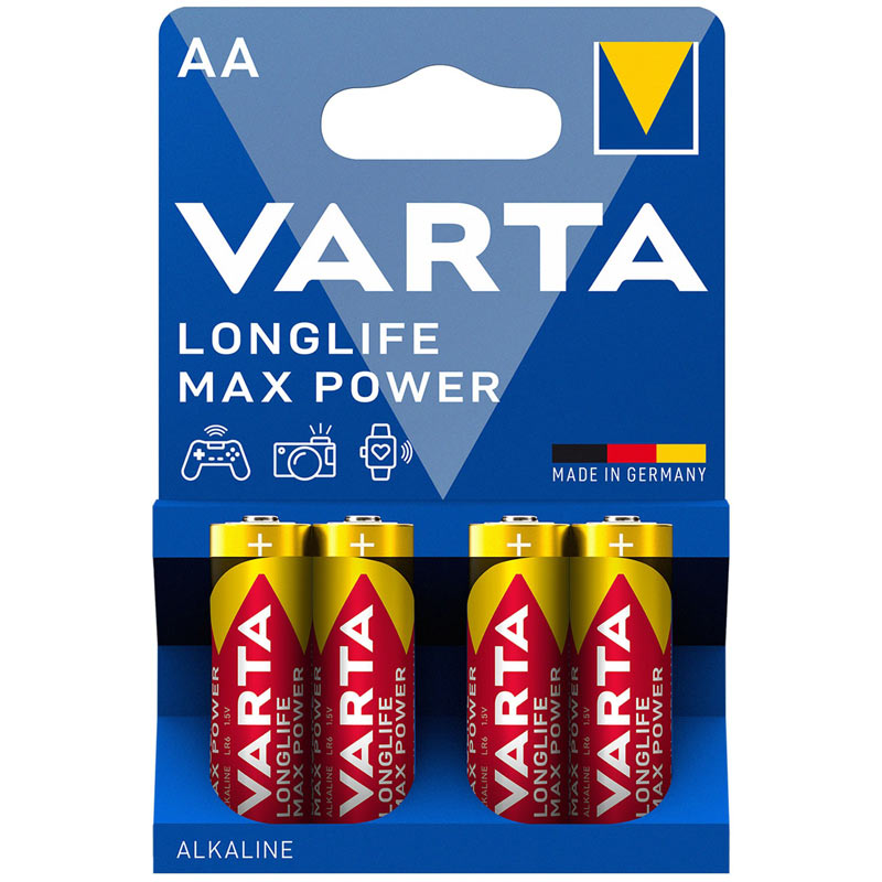 باتری چهارتایی قلمی Varta Long Life Max Power Alkaline LR6/MN1500 1.5V AA- ولتاژ باتری : 1.5 ولت