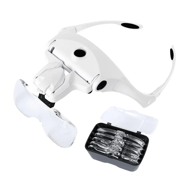 این ذره بین مناسب کارهایی مانند تعمیرات الکترونیکی، مدلسازی، جواهرسازی، قرائت نقشهها و سایر فعالیت های دقیق میباشد. ذره بین هدلایتی 9892B2C دارای 5 لنز با بزرگنمایی های 1.0X, 1.5X, 2.0X, 2.5X , 3.5X میباشد.بست های این ذره بین هدبندی قابلیت کوچک و بزرگ شدن داشته و به فرد کمک می کند تا ذره بین را محکم روی پیشانی خود ببندد. ذره بین پیشانی بندی دارای یک LED در بالای خود بوده که با 1 باتری شارژی تغذیه می شود.