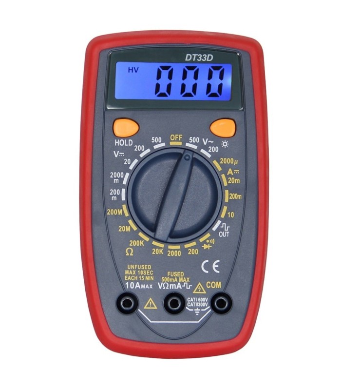 مولتیمتر دیجیتال DT33 یکی از ابزارهای دقیق در حوزه برق و الکترونیک است که برای اندازهگیری و سنجش کمیت های الکتریکی مورد استفاده قرار می گیرد. این دستگاه جایگزینی برای چندین ابزار اندازهگیری مانند ولتمتر ، آمپرمتر و اهممتر است و برای تعمیرات خانگی، تست قطعات الکترونیکی، عیب یابی مدارها و کارهای آموزشی انتخاب مناسبی به شمار میآید.