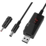 کابل USB افزاینده ولتاژ DC با خروجی 9V و 12V به همراه نمایشگرمبدل DC به DC معماری BOOST افزاینده ولتاژ تا 5 ولت به 9 و 12 ولت و حداکثر جریان خروجی 2 آمپر
